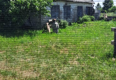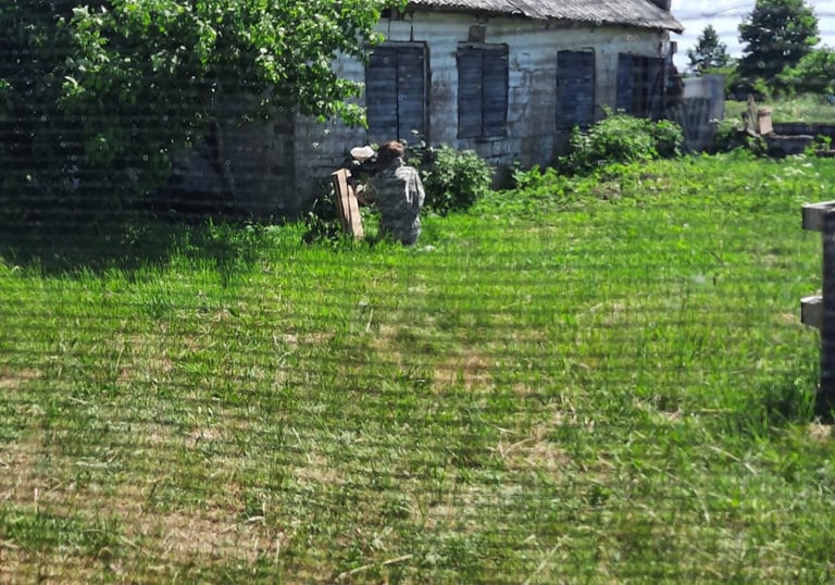 Veiksmo kupinas aikštelės žaidimas tarp kliučių, užtvarų ir pastato.